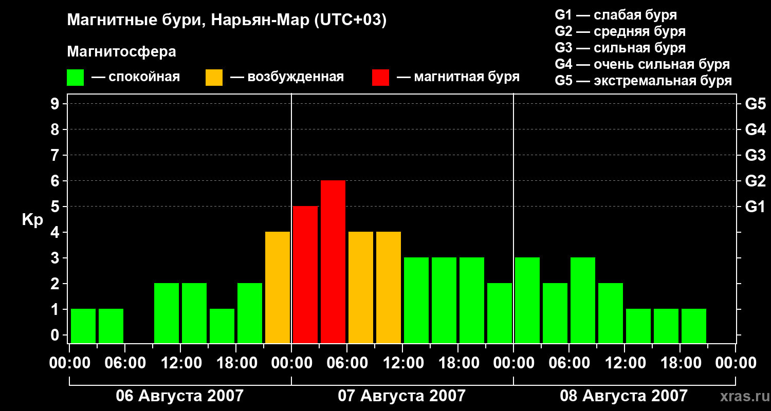 Магнитные бури в Нарьян-Маре 8 августа 2007 года