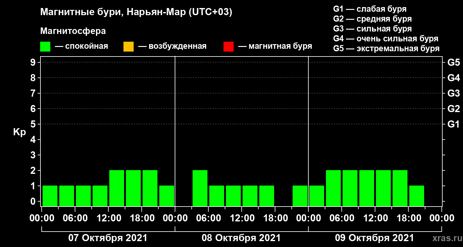 Магнитные бури в Нарьян-Маре 9 октября 2021 года
