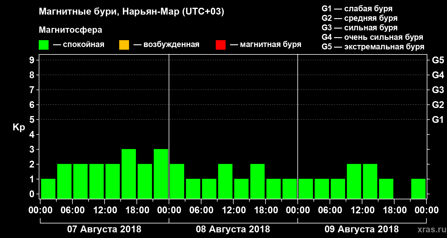 Магнитные бури в Нарьян-Маре 9 августа 2018 года