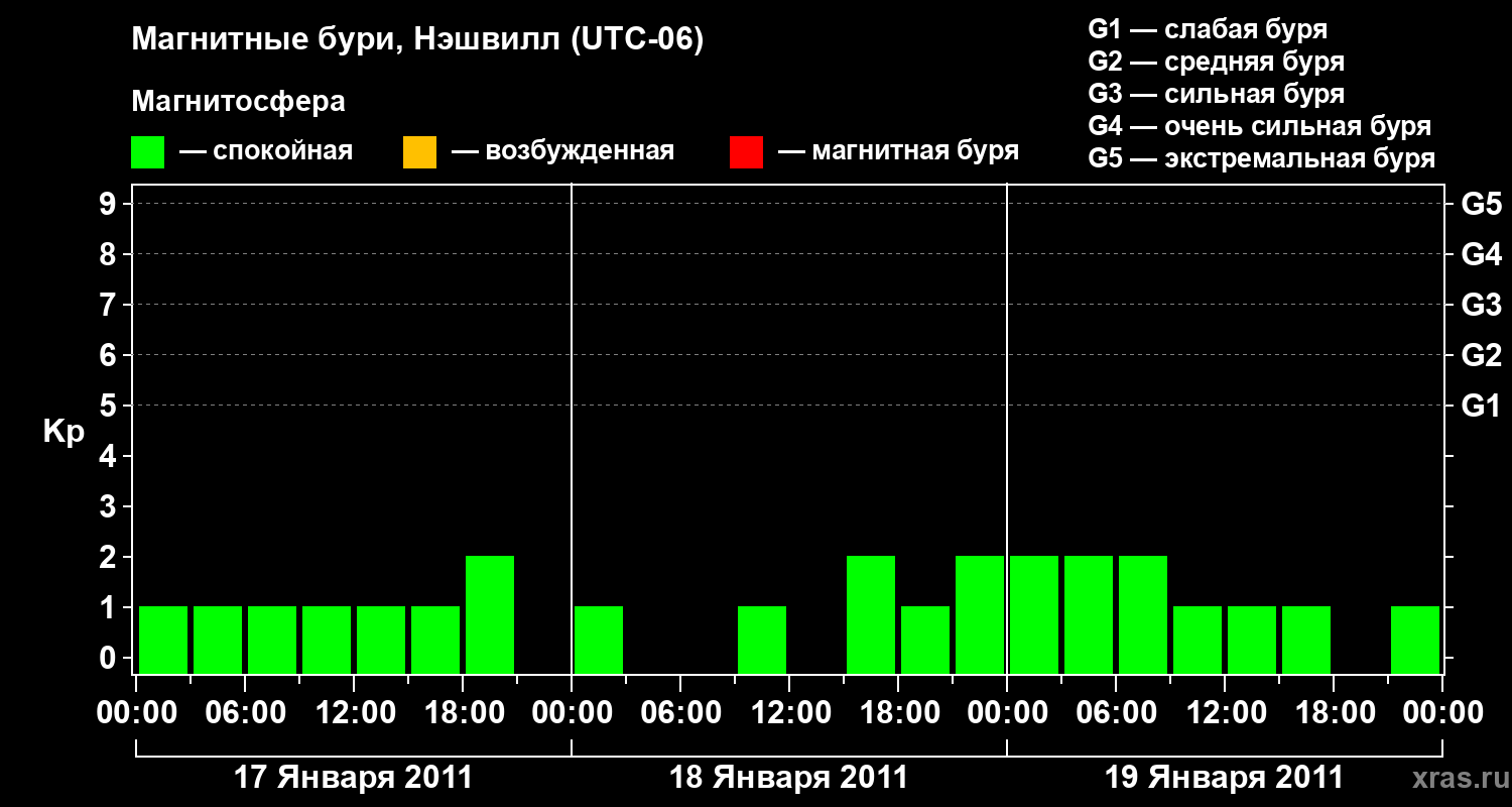 Изменения геомагнитного индекса Kp с 17 по 19 января 2011 года для средних широт