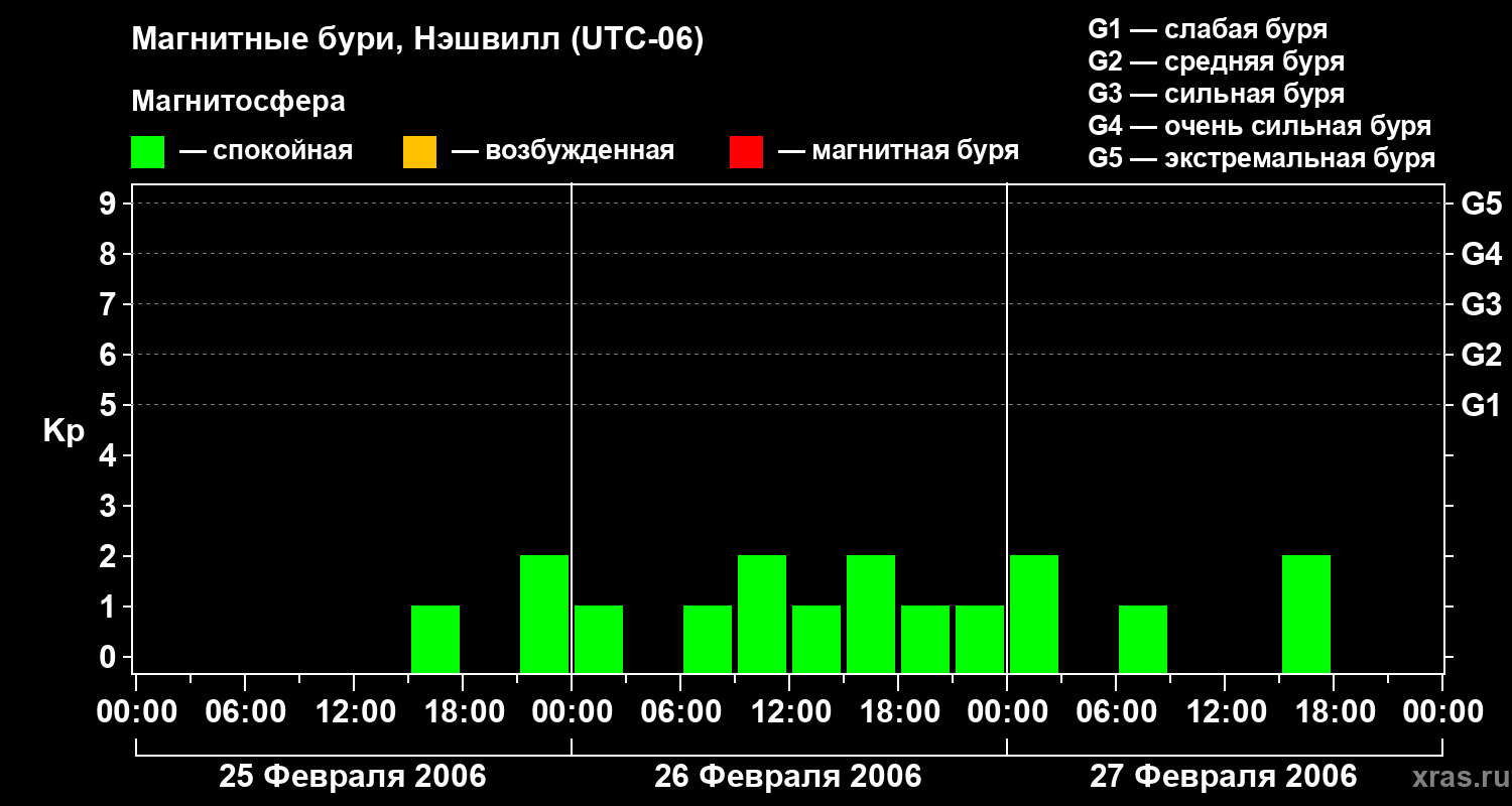 Изменения геомагнитного индекса Kp с 25 по 27 февраля 2006 года для средних широт