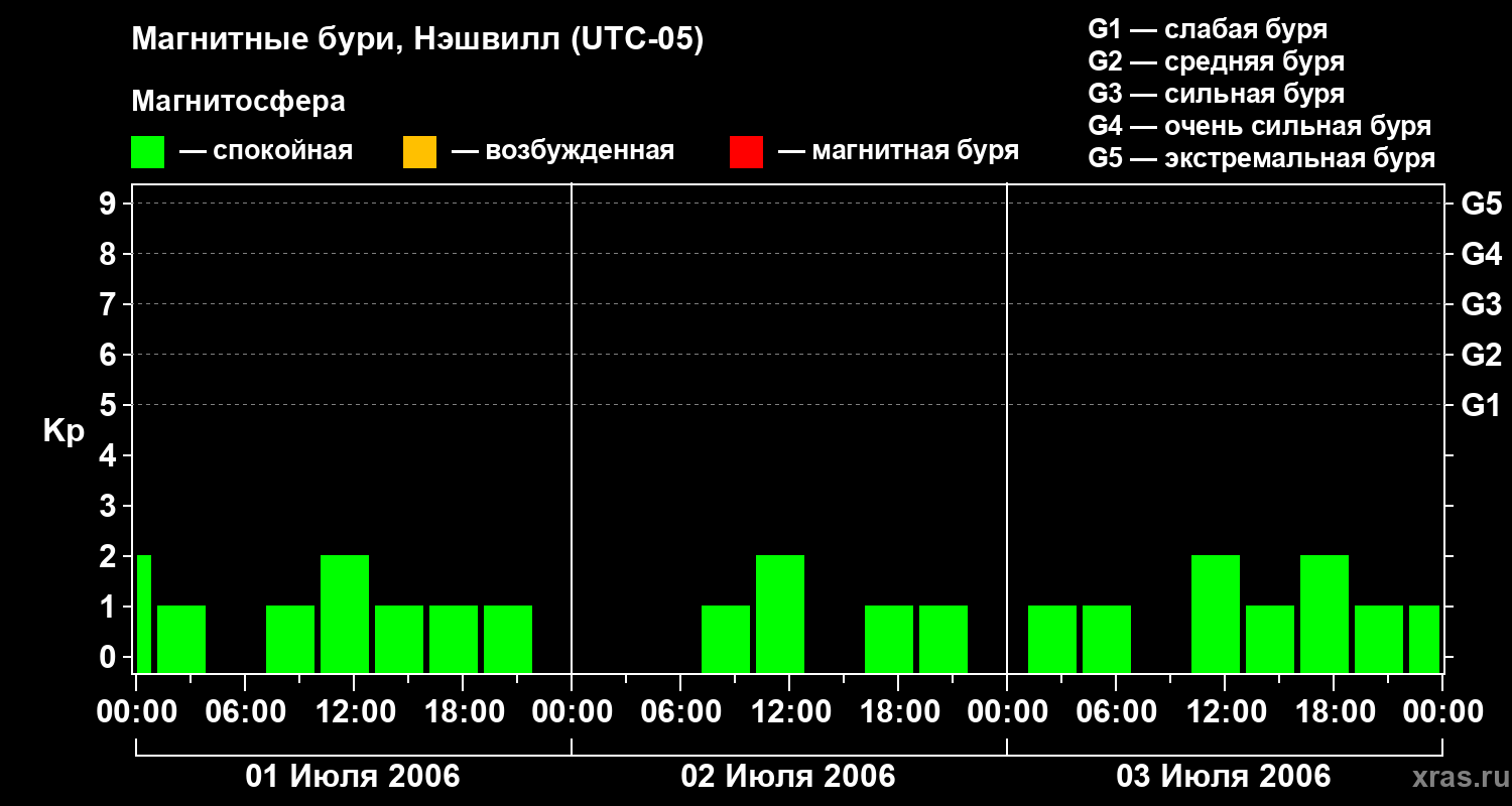 Изменения геомагнитного индекса Kp с 1 по 3 июля 2006 года для средних широт