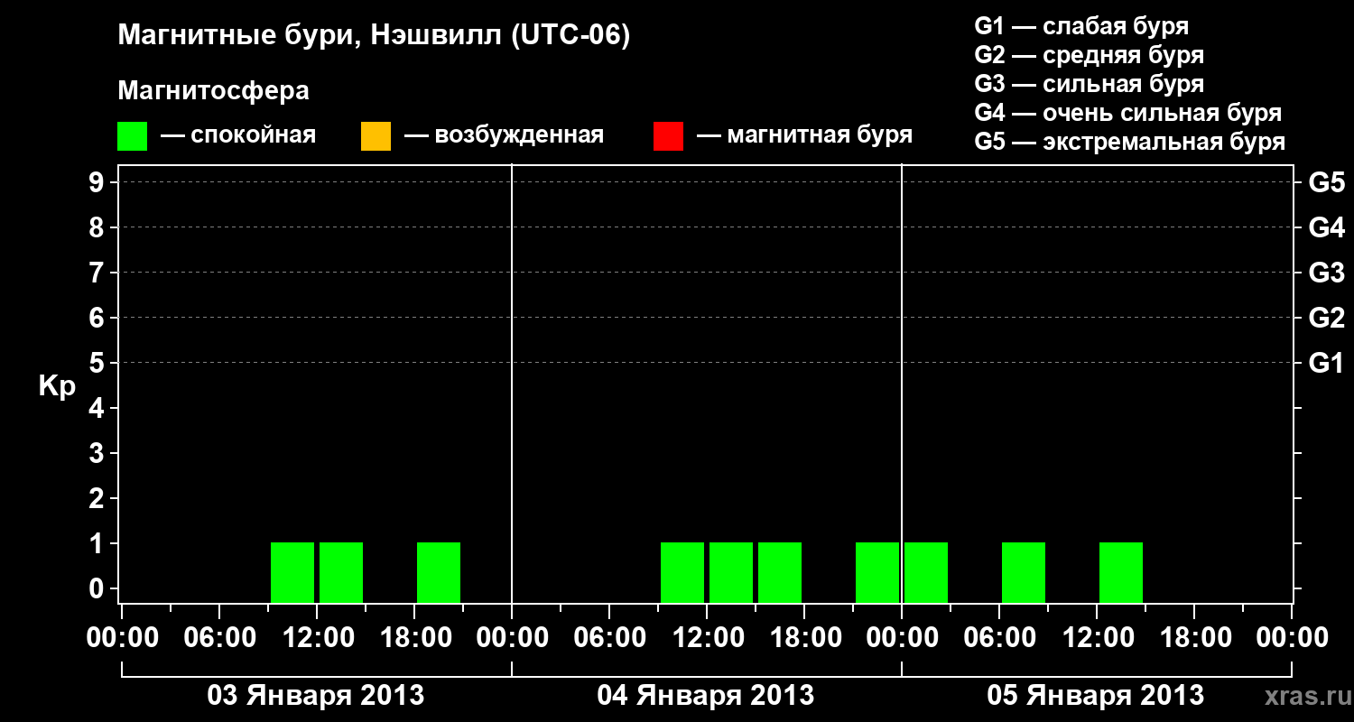 Изменения геомагнитного индекса Kp с 3 по 5 января 2013 года для средних широт