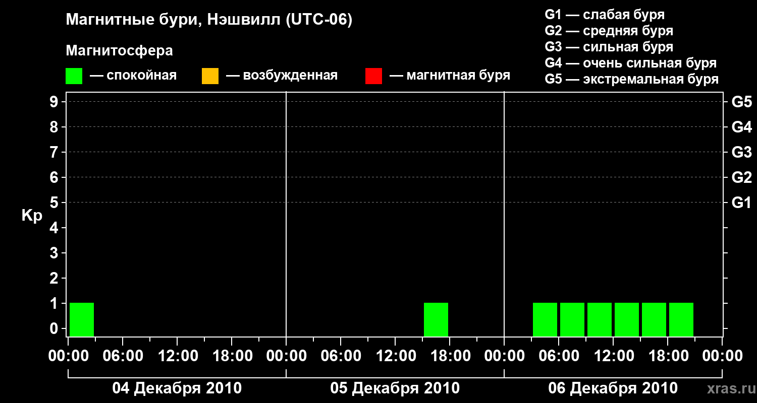 Изменения геомагнитного индекса Kp с 4 по 6 декабря 2010 года для средних широт