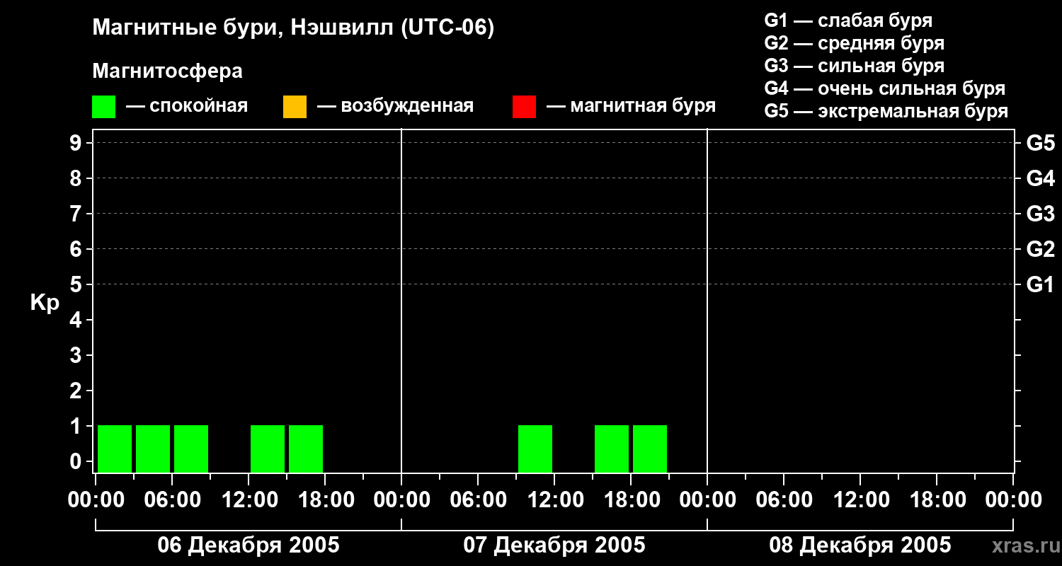 Изменения геомагнитного индекса Kp с 6 по 8 декабря 2005 года для средних широт