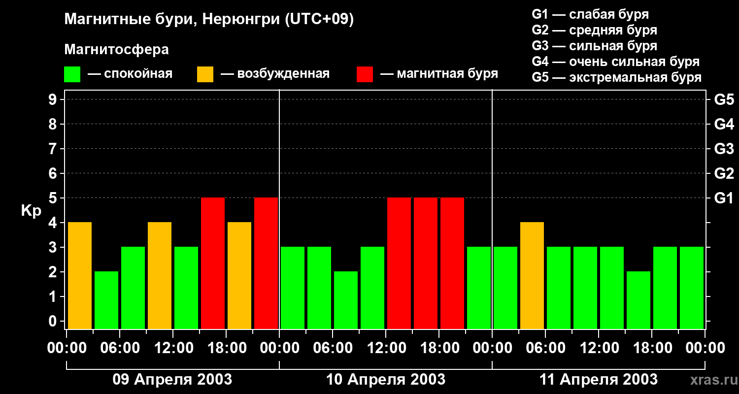 Магнитные бури Нерюнгри 11 апреля 2003 года
