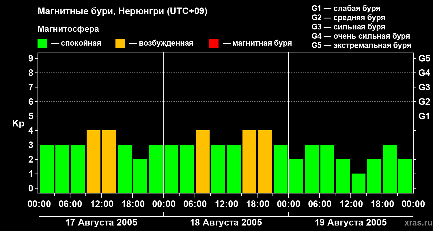 Магнитные бури Нерюнгри 19 августа 2005 года