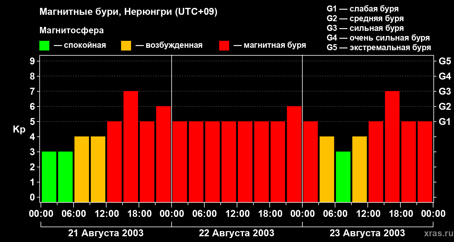 Магнитные бури Нерюнгри 23 августа 2003 года