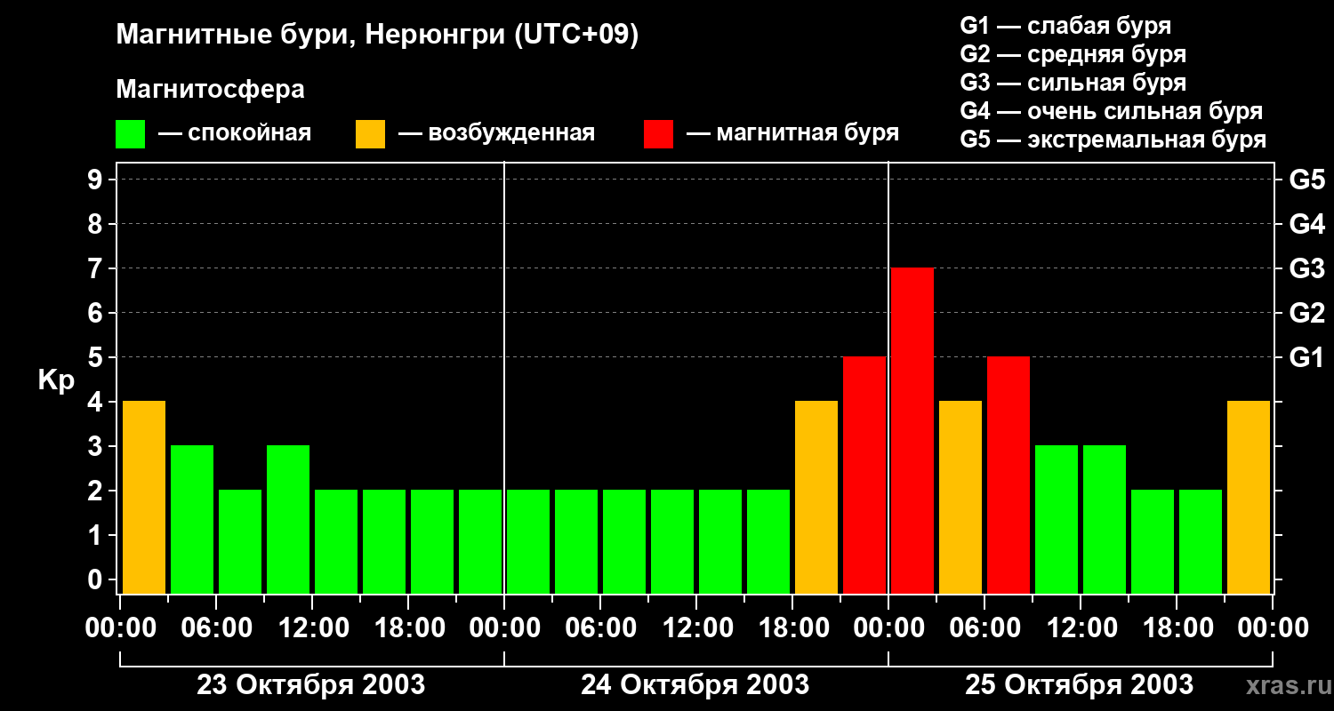 Магнитные бури Нерюнгри 25 октября 2003 года