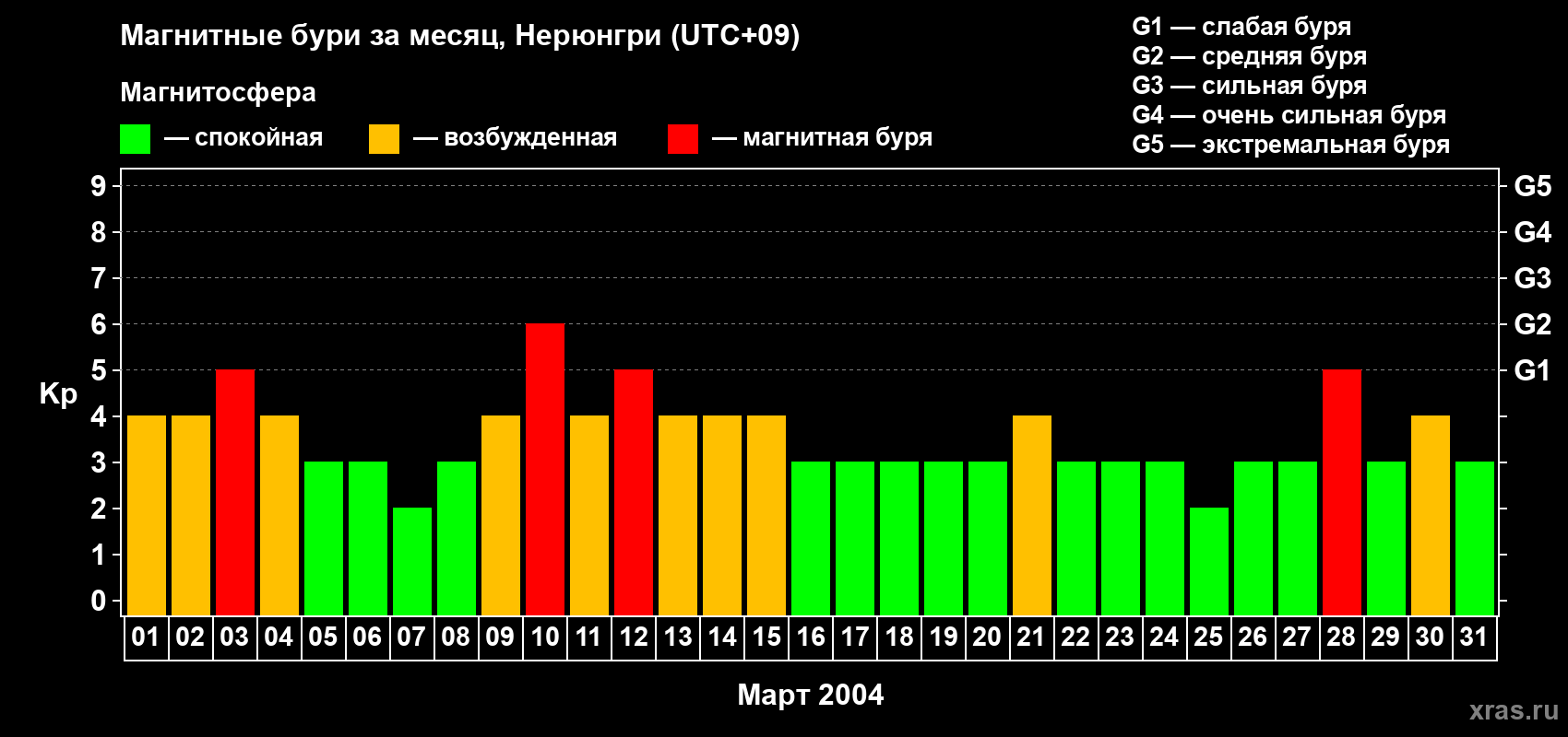 Магнитные бури Нерюнгри в марте 2004 года