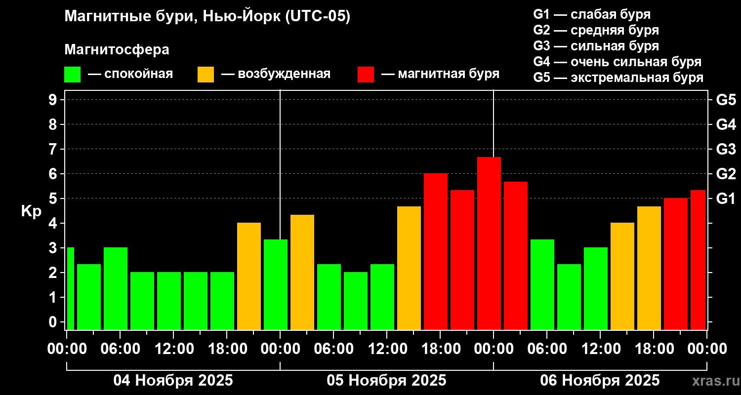 Магнитные бури в Нью-Йорке — 6 ноября 2025 года