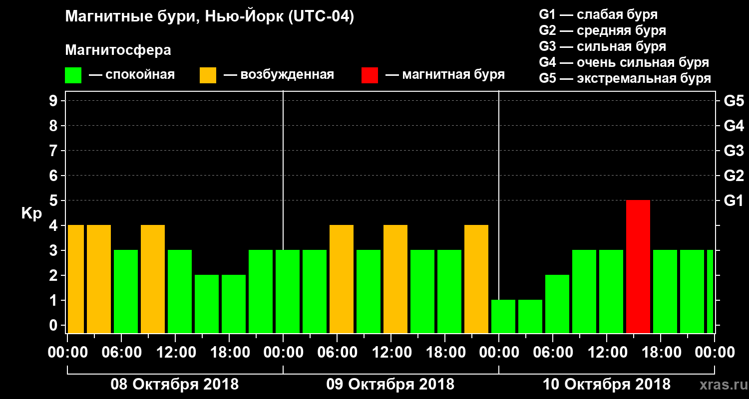 Магнитные бури в Нью-Йорке 10 октября 2018 года