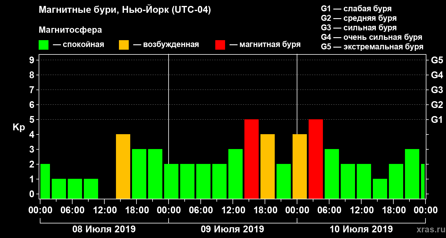 Магнитные бури в Нью-Йорке — 10 июля 2019 года