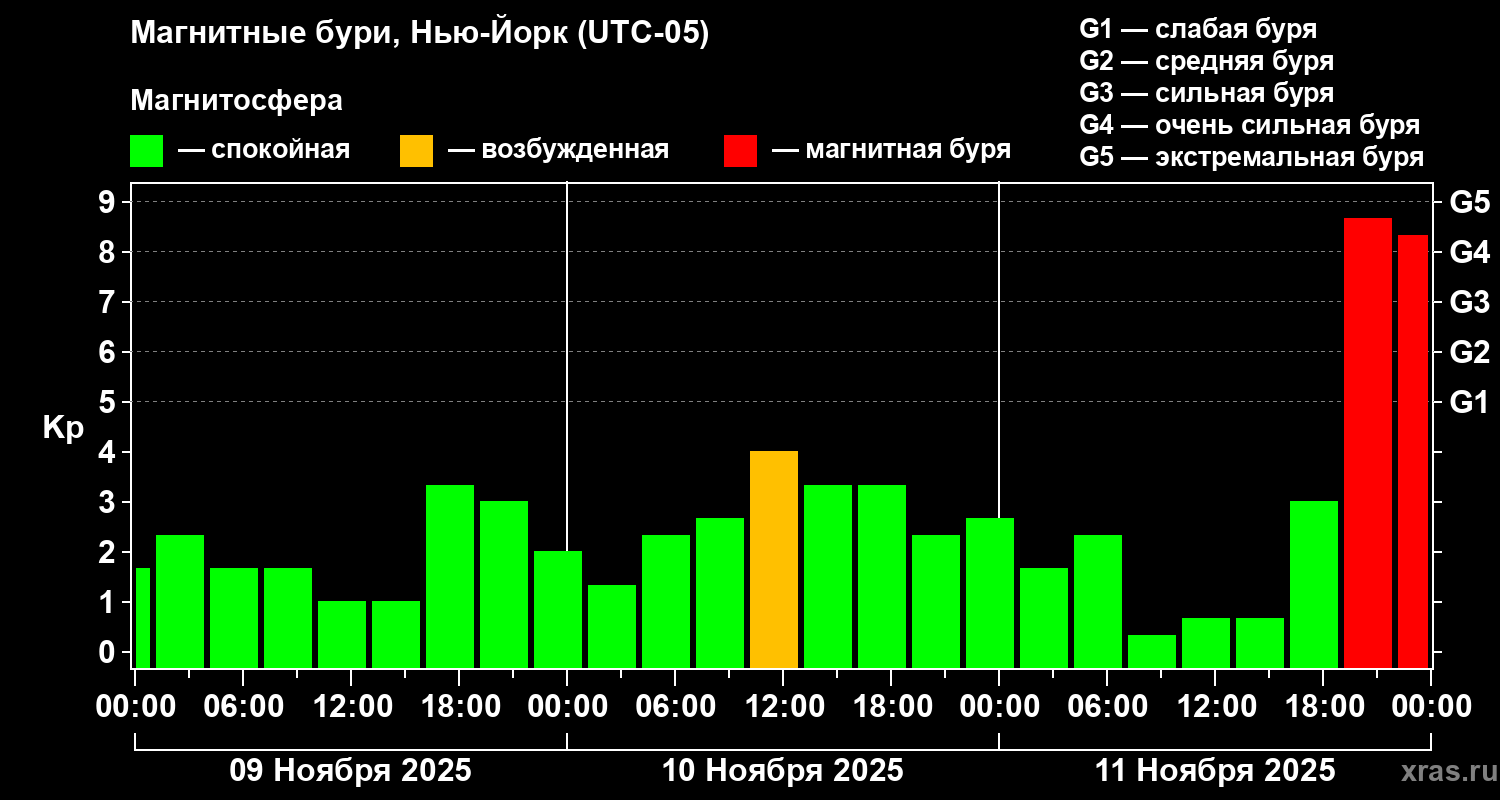Магнитные бури в Нью-Йорке — 11 ноября 2025 года