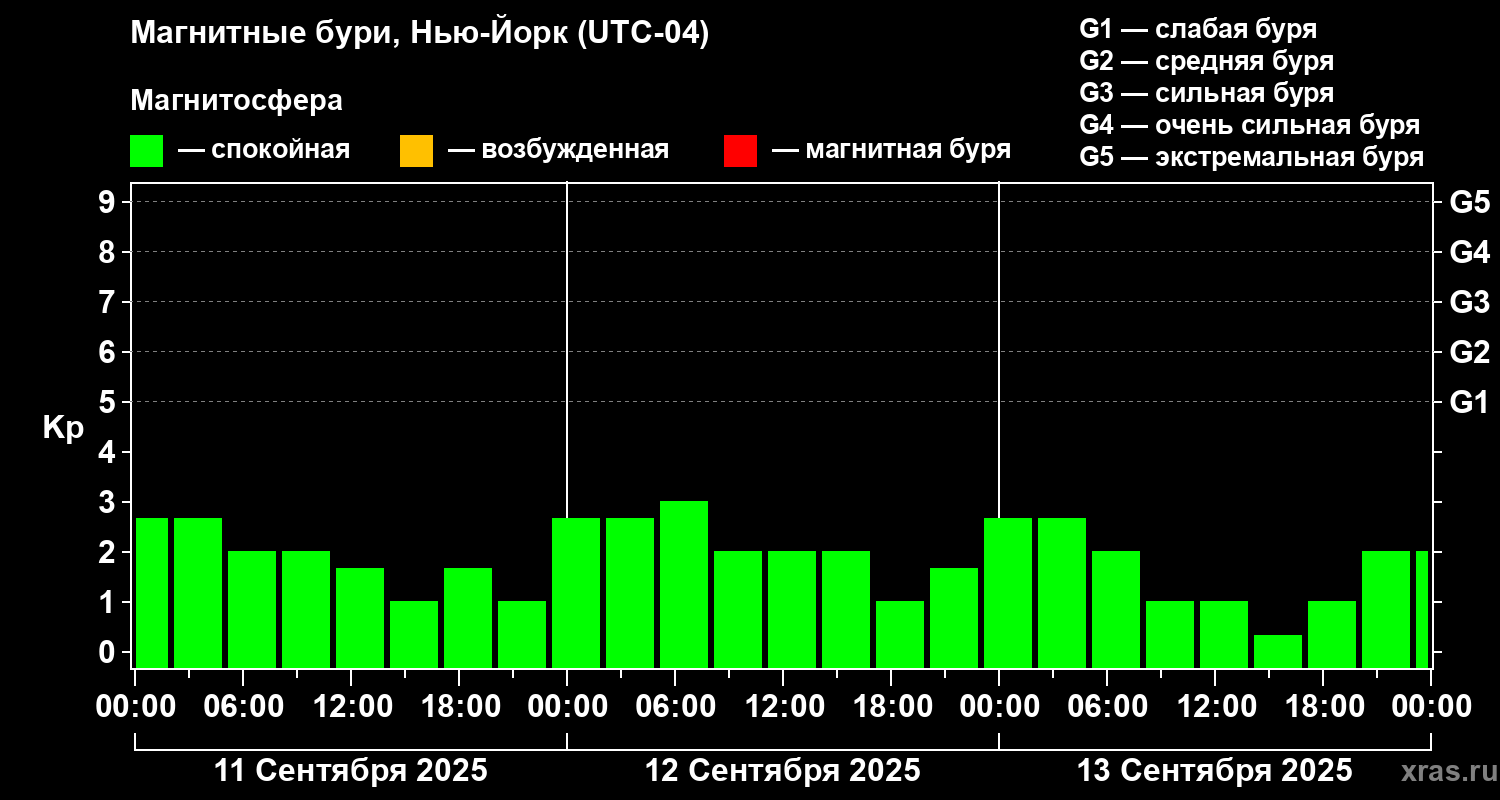 Магнитные бури в Нью-Йорке 13 сентября 2025 года