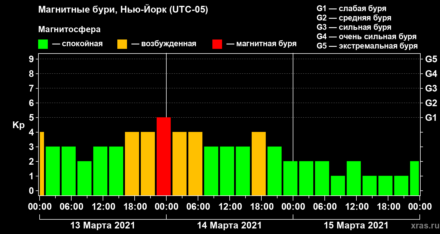 Магнитные бури в Нью-Йорке 15 марта 2021 года
