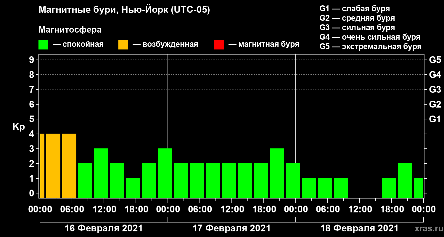 Магнитные бури в Нью-Йорке 18 февраля 2021 года