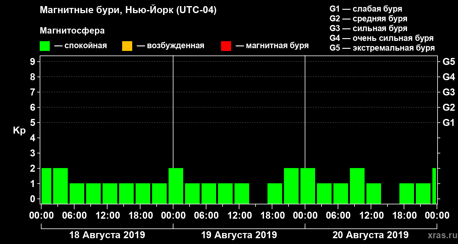 Магнитные бури в Нью-Йорке 20 августа 2019 года