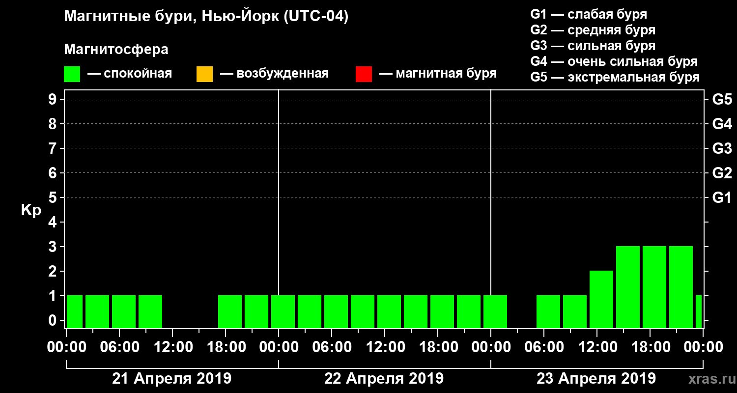 Магнитные бури в Нью-Йорке 23 апреля 2019 года