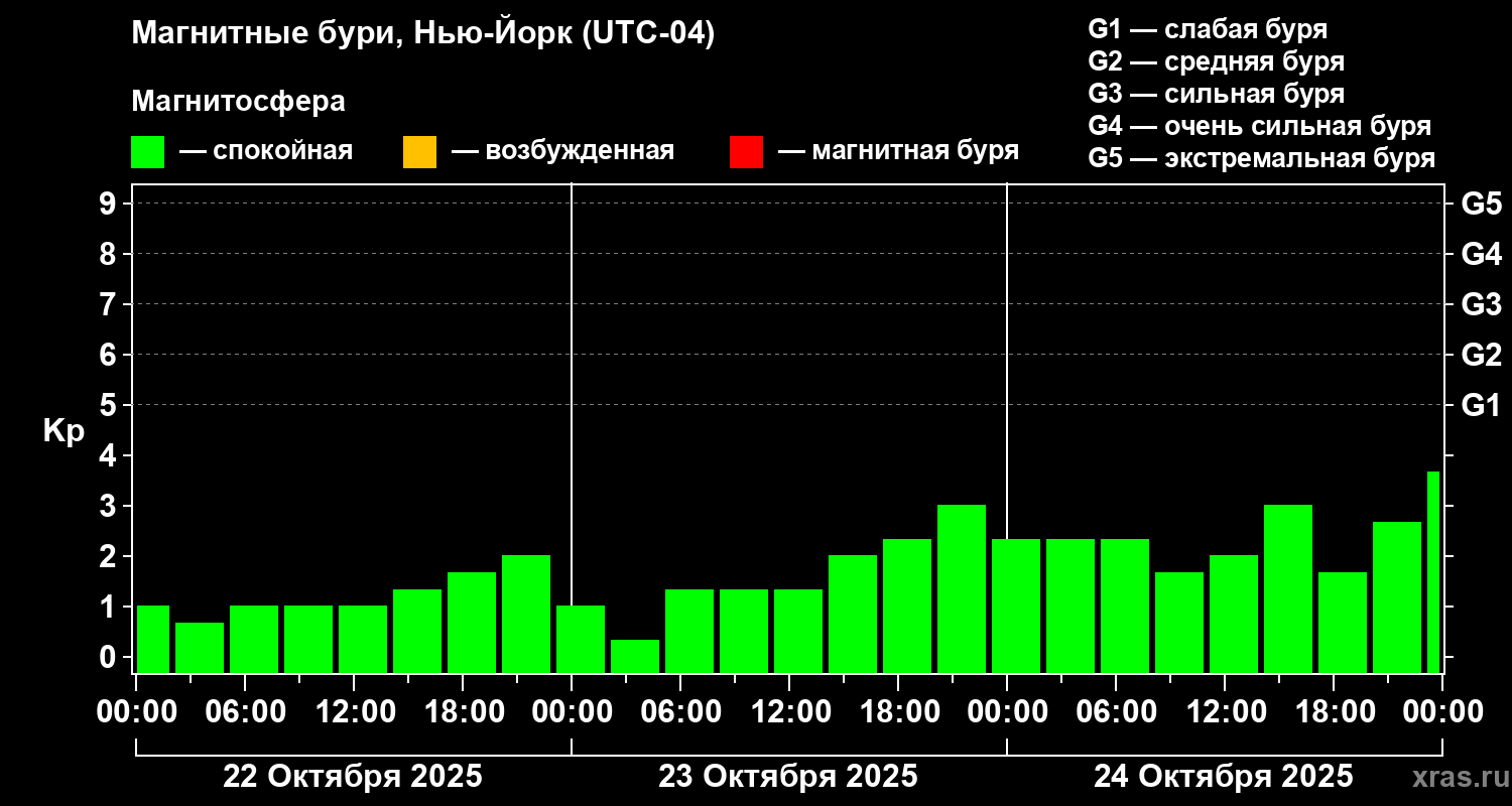 Магнитные бури в Нью-Йорке — 24 октября 2025 года