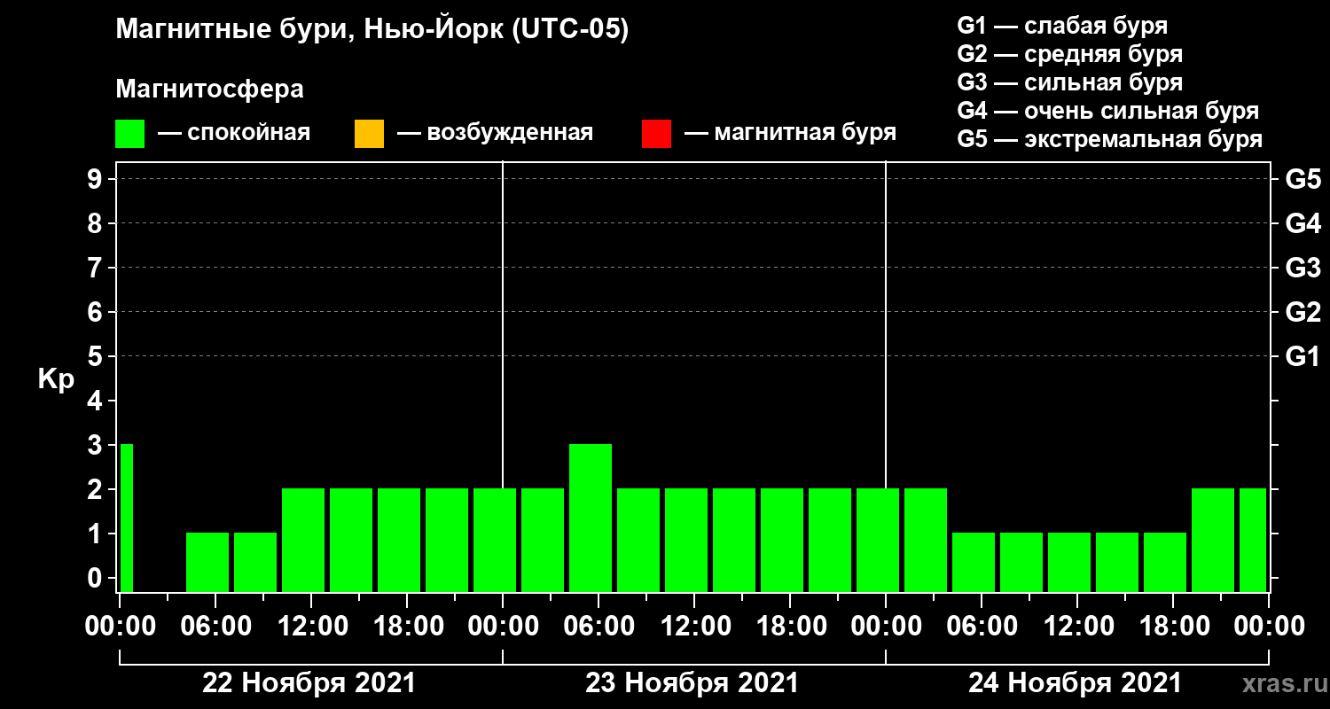 Магнитные бури в Нью-Йорке — 24 ноября 2021 года