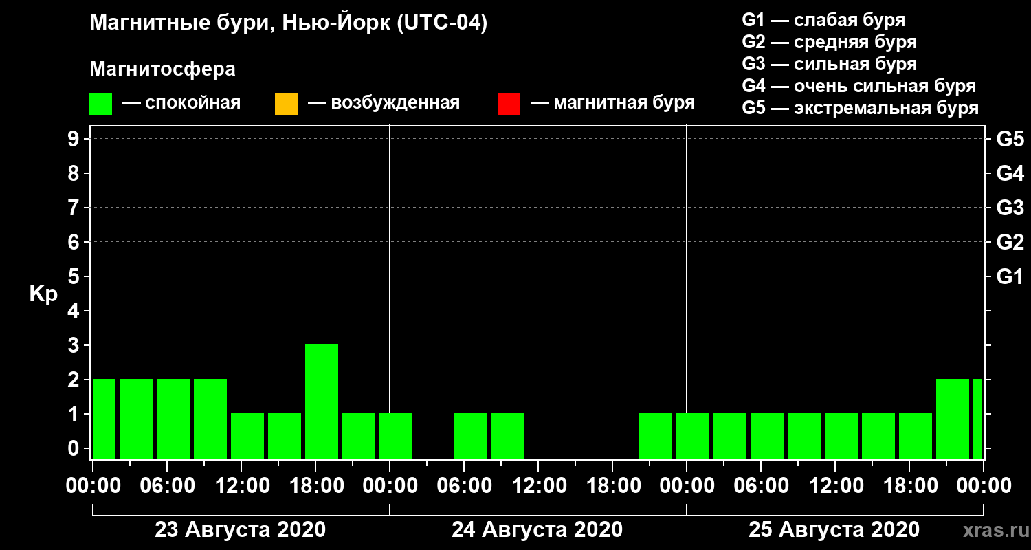 Магнитные бури в Нью-Йорке 25 августа 2020 года