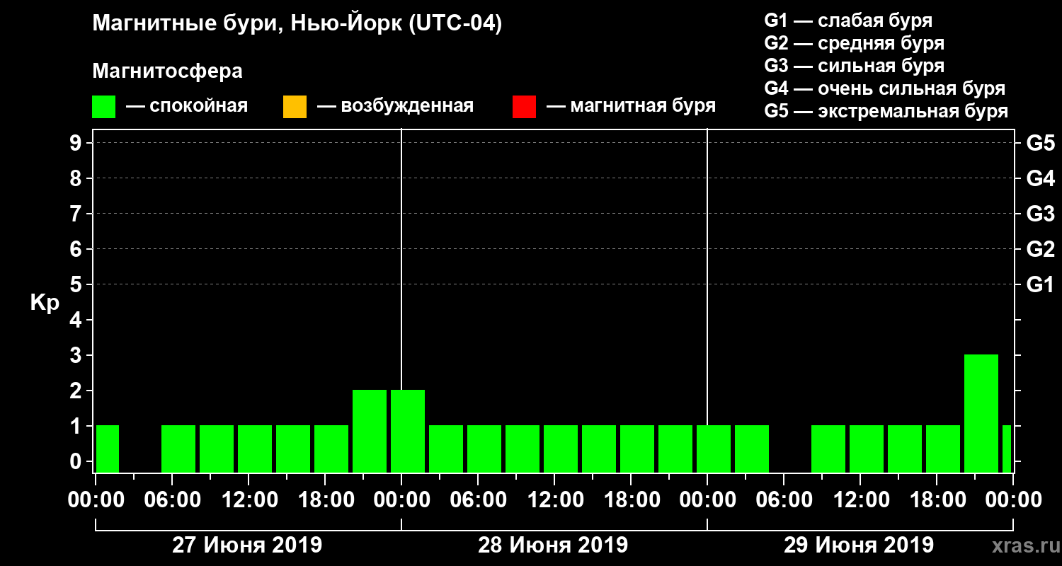 Магнитные бури в Нью-Йорке 29 июня 2019 года