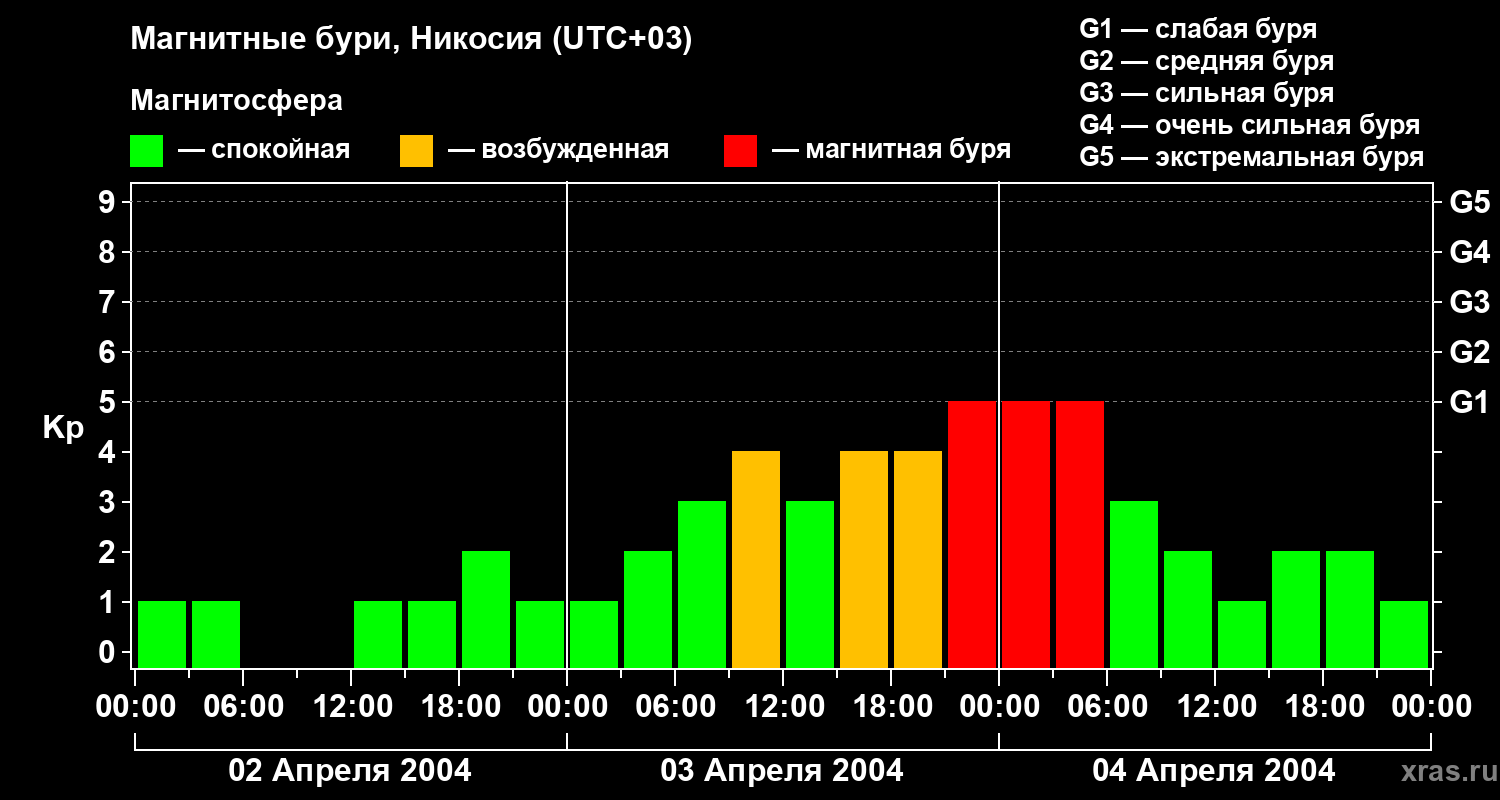 Магнитные бури в Никосии — 4 апреля 2004 года