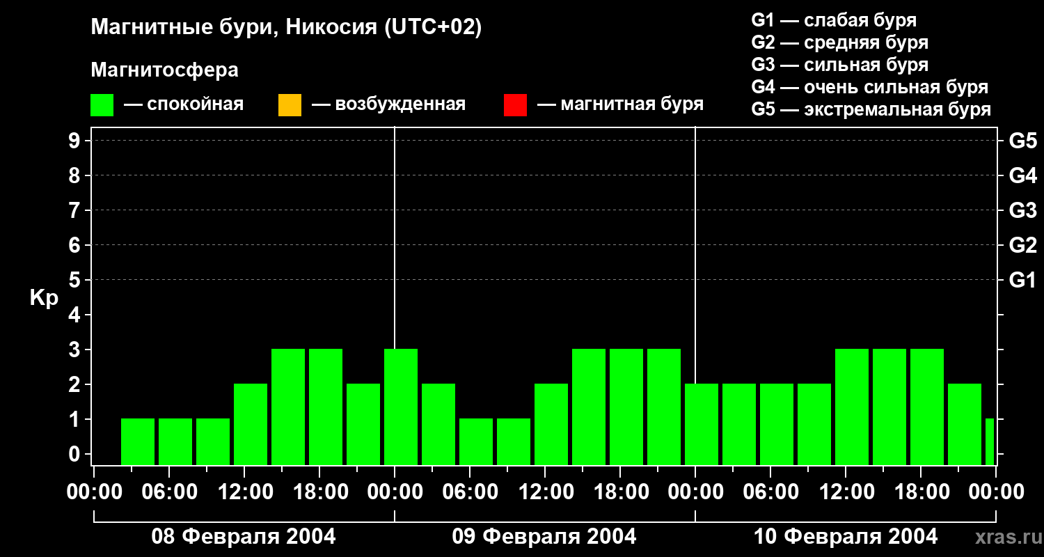 Магнитные бури в Никосии — 10 февраля 2004 года
