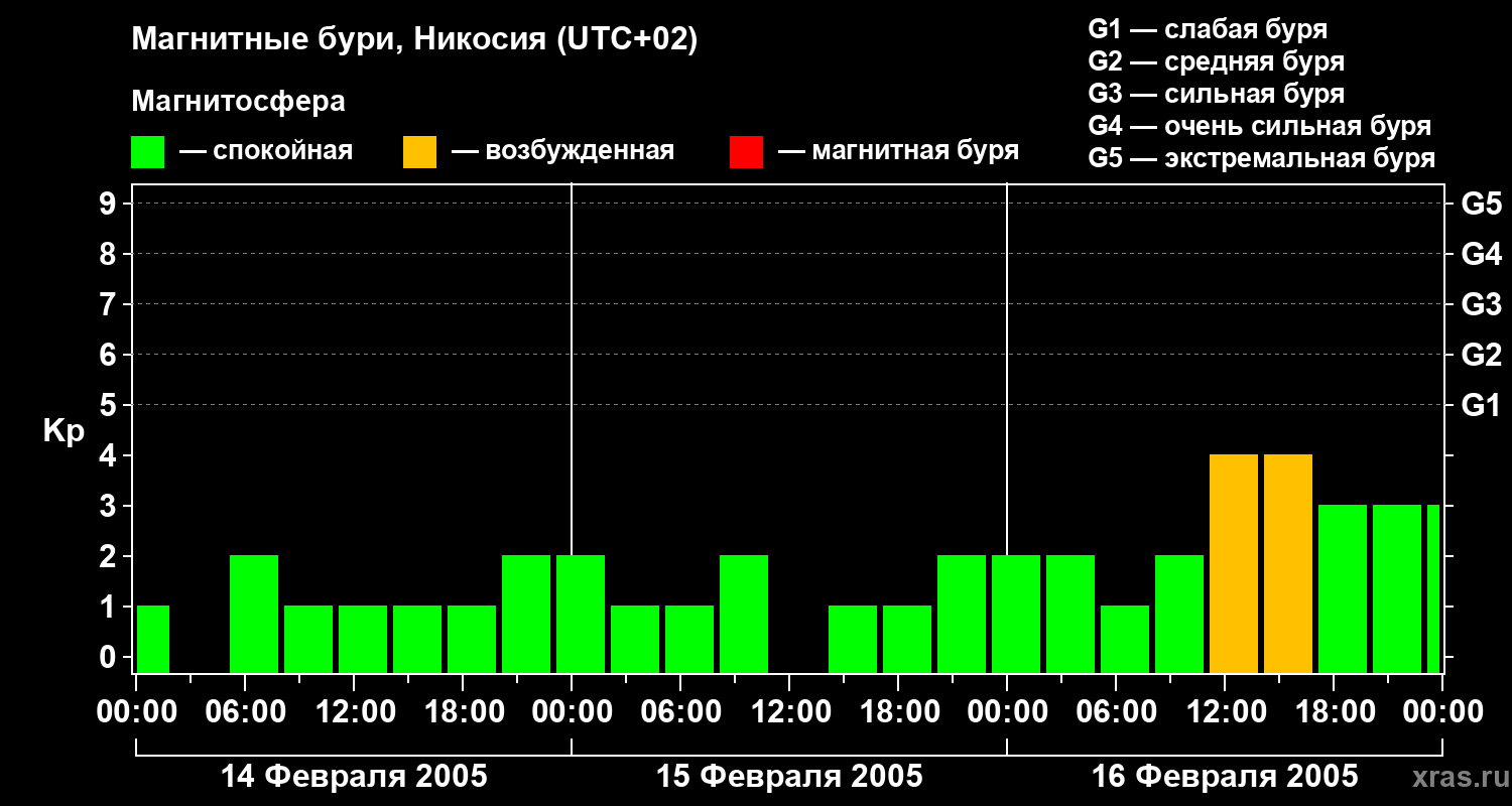 Магнитные бури в Никосии — 16 февраля 2005 года