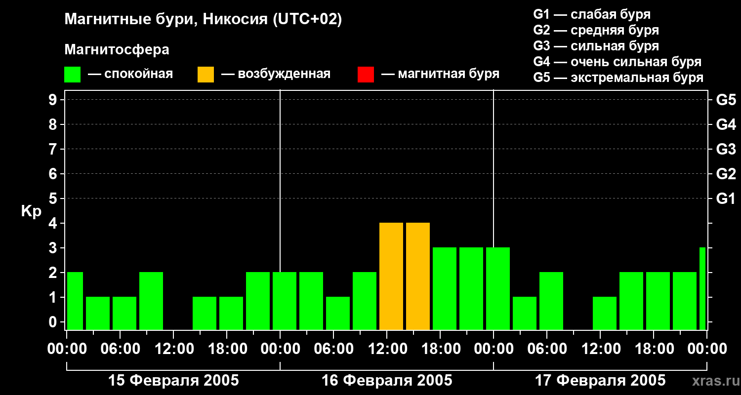 Магнитные бури в Никосии — 17 февраля 2005 года
