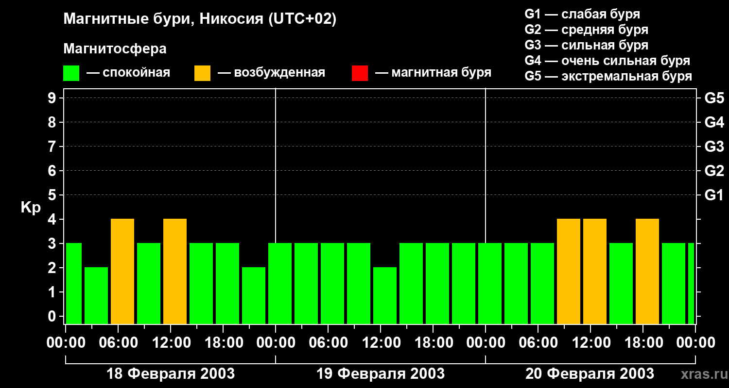 Магнитные бури в Никосии — 20 февраля 2003 года
