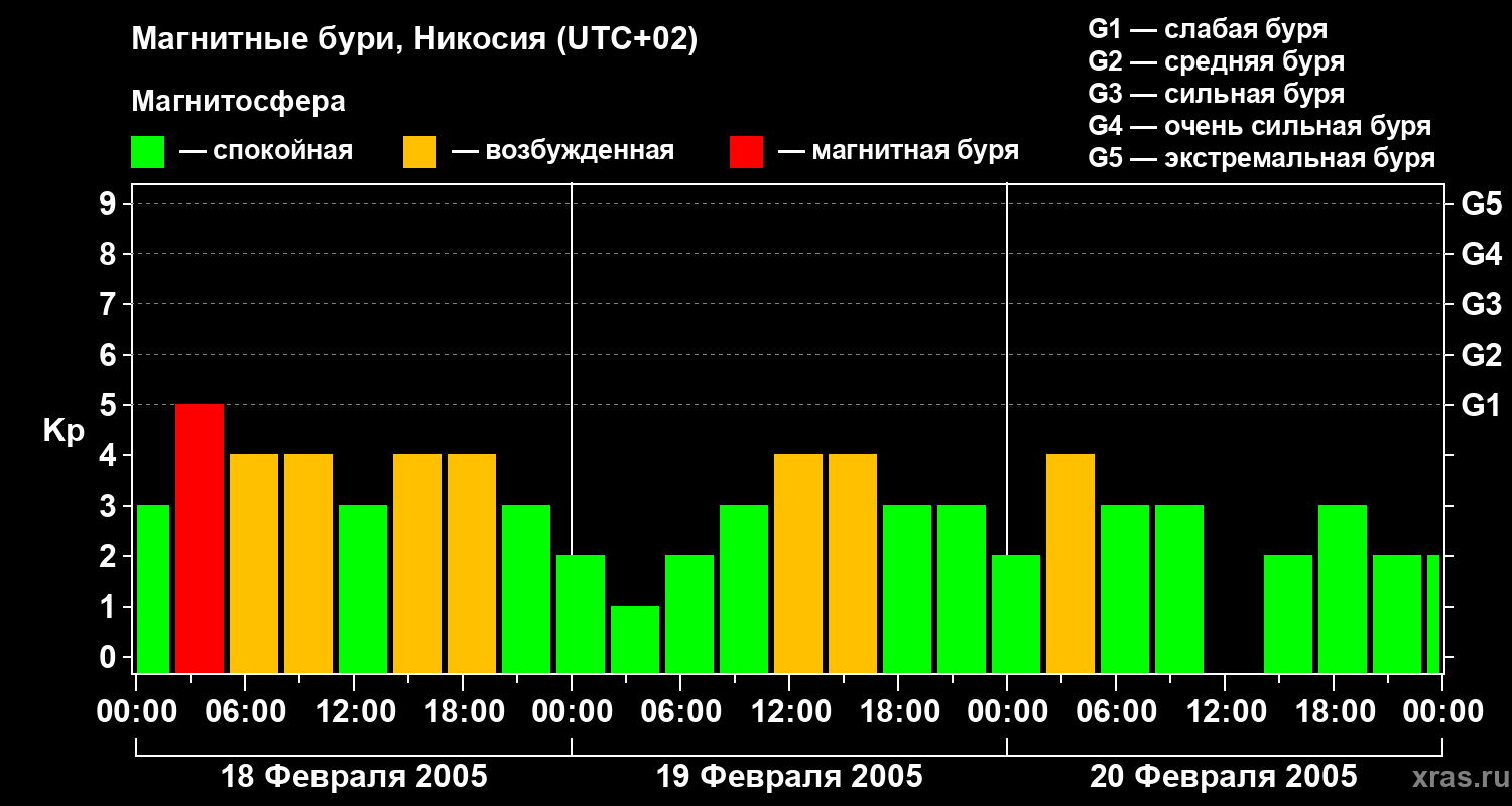 Магнитные бури в Никосии — 20 февраля 2005 года