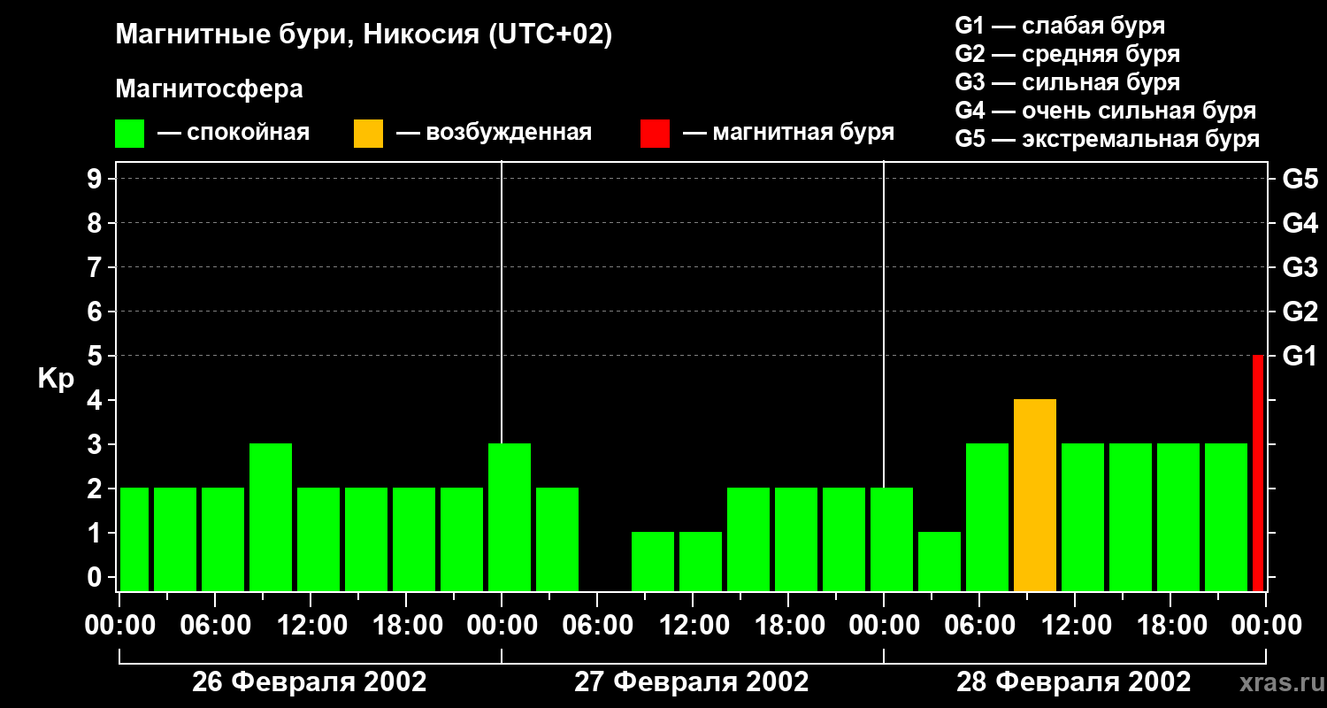 Магнитные бури в Никосии — 28 февраля 2002 года