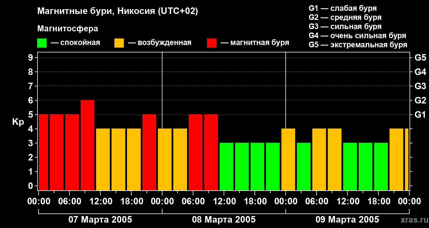 Магнитные бури в Никосии — 9 марта 2005 года