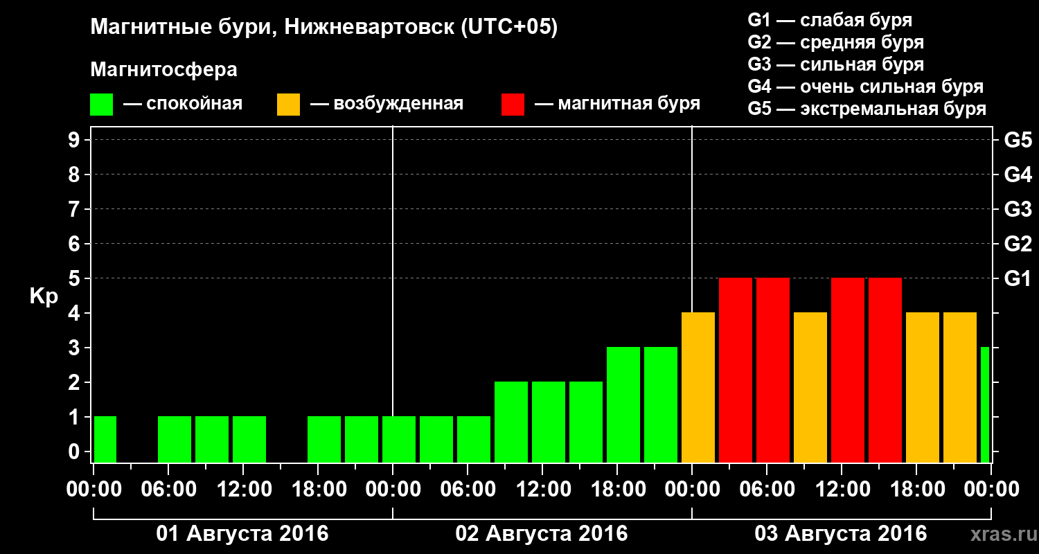 Магнитные бури в Нижневартовске — 3 августа 2016 года