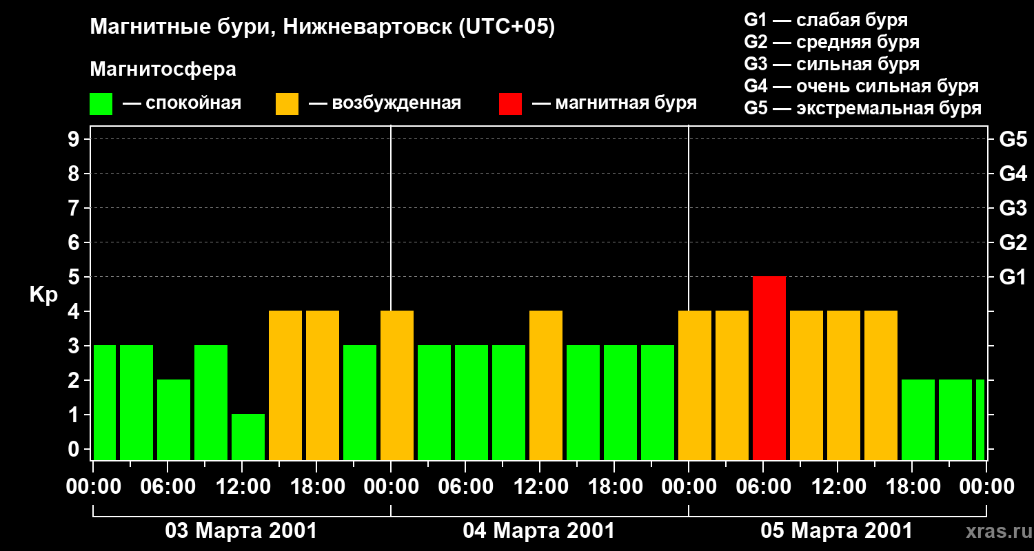 Магнитные бури в Нижневартовске — 5 марта 2001 года