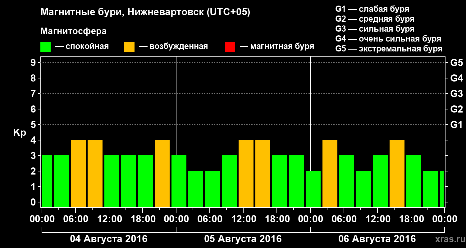Магнитные бури в Нижневартовске 6 августа 2016 года