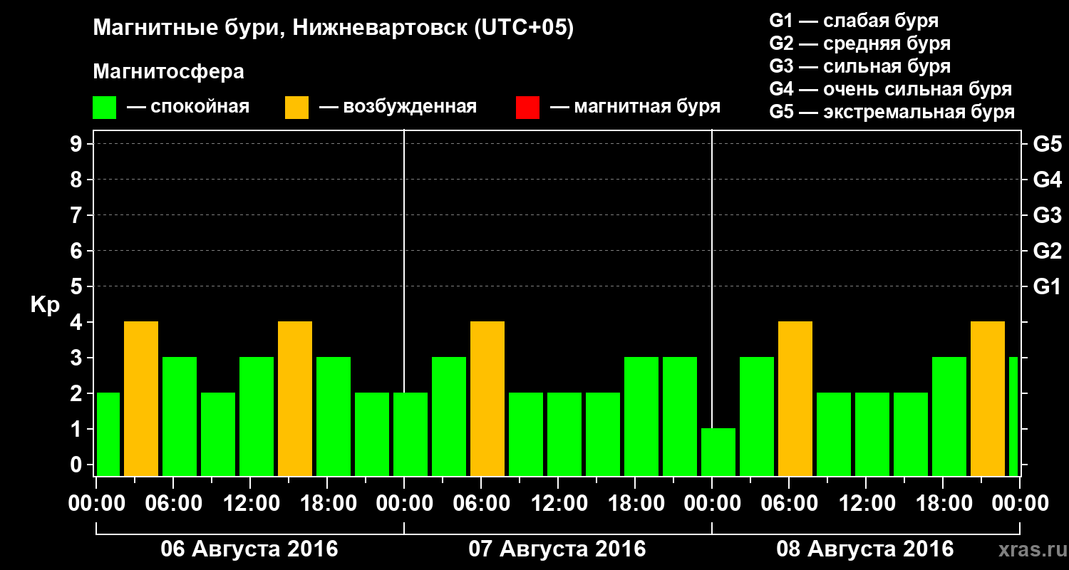 Магнитные бури в Нижневартовске в августе 2016 года