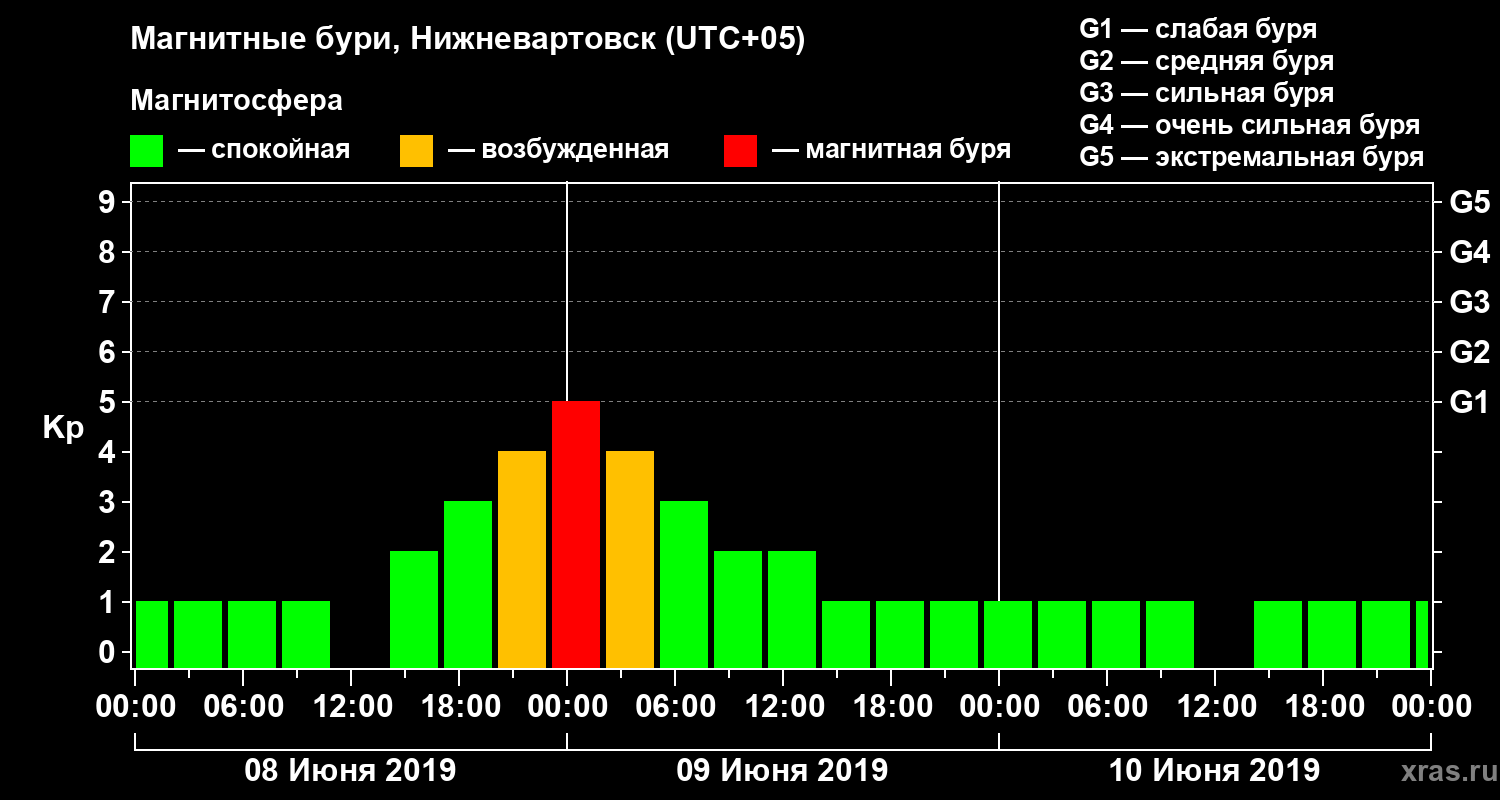 Магнитные бури в Нижневартовске 10 июня 2019 года
