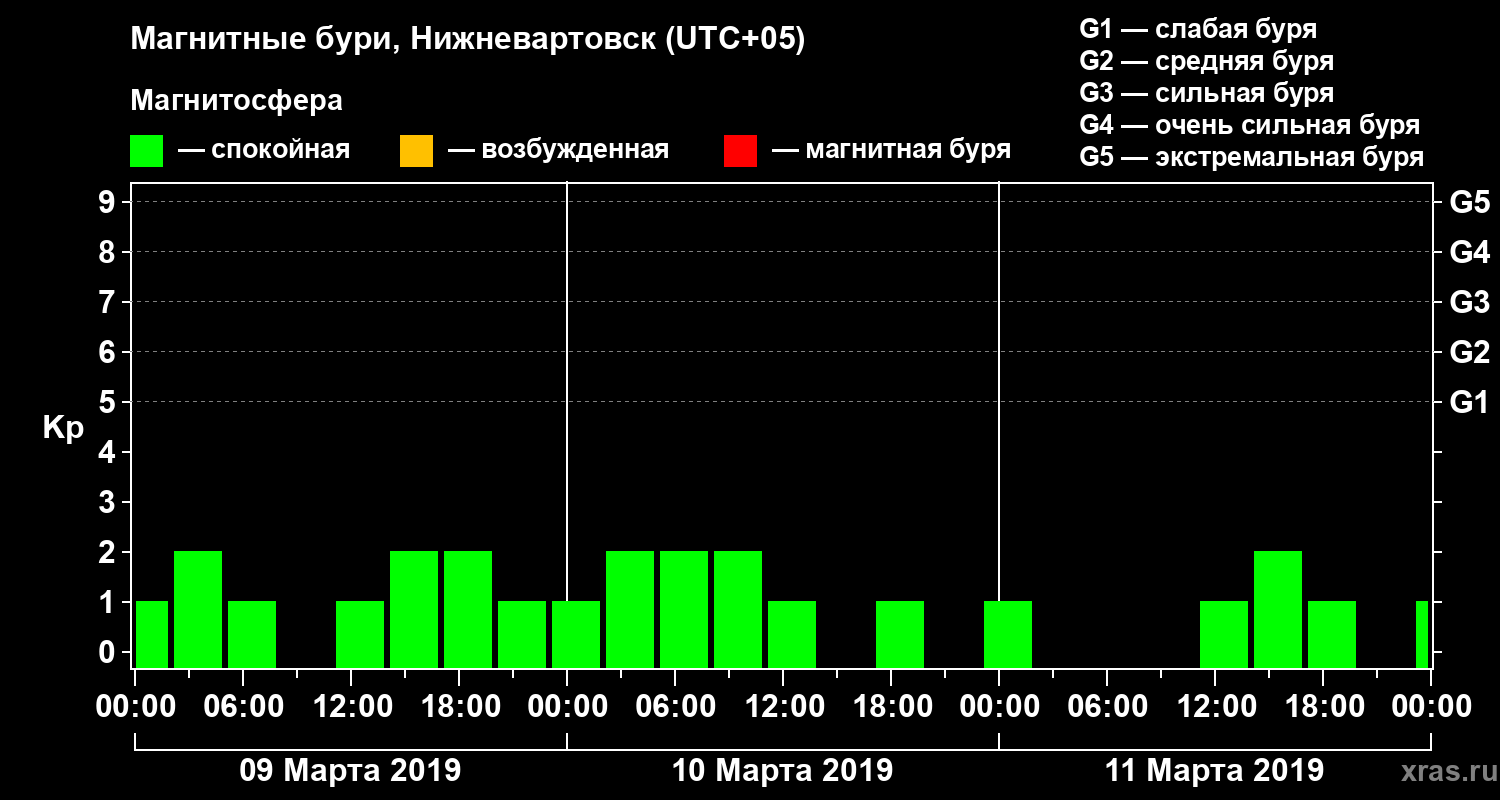 Магнитные бури в Нижневартовске 11 марта 2019 года
