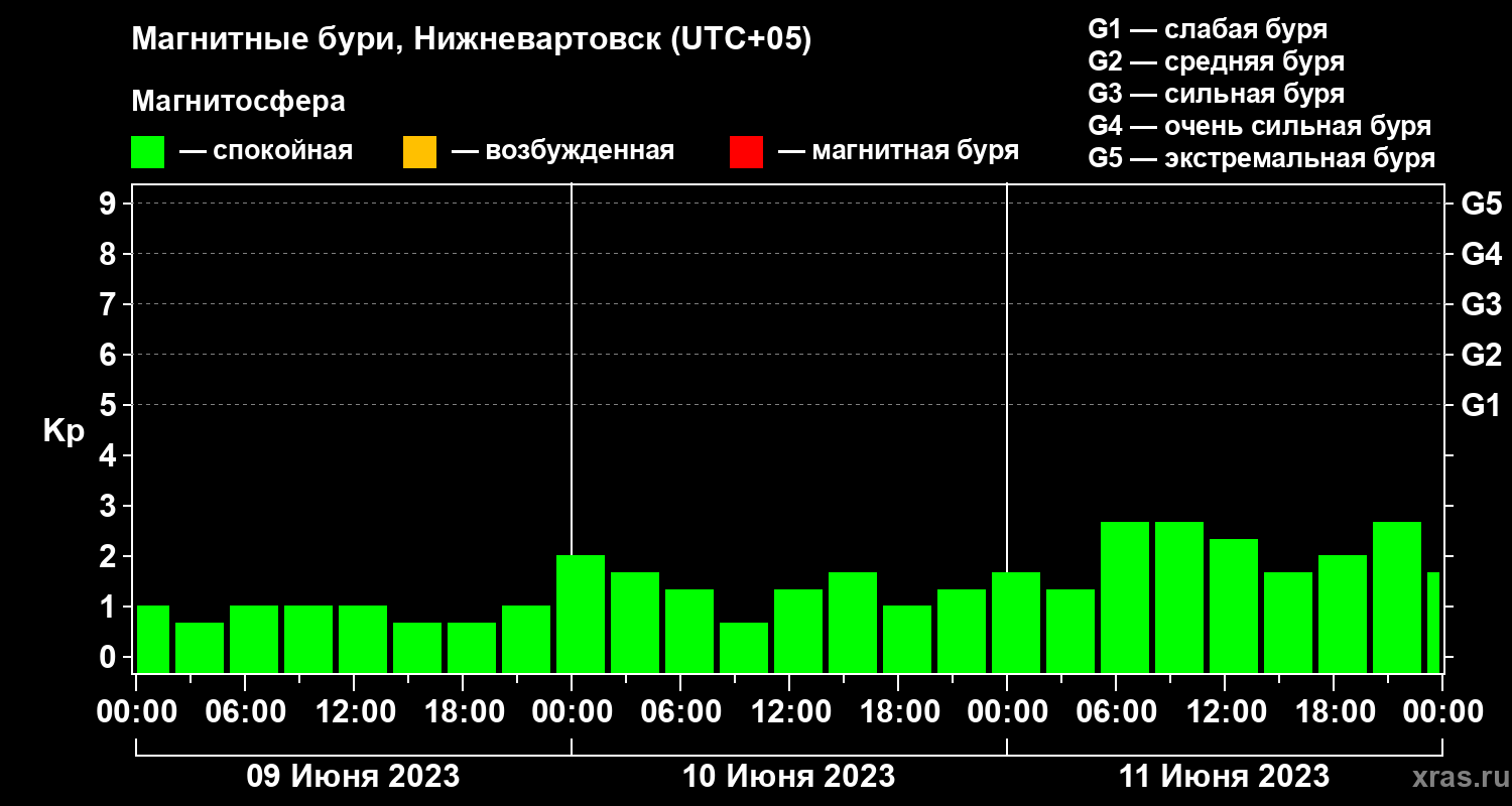 Магнитные бури в Нижневартовске — 11 июня 2023 года