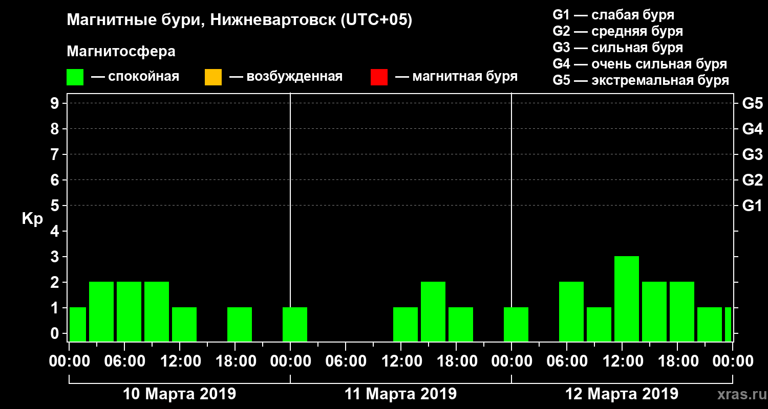 Магнитные бури в Нижневартовске 12 марта 2019 года