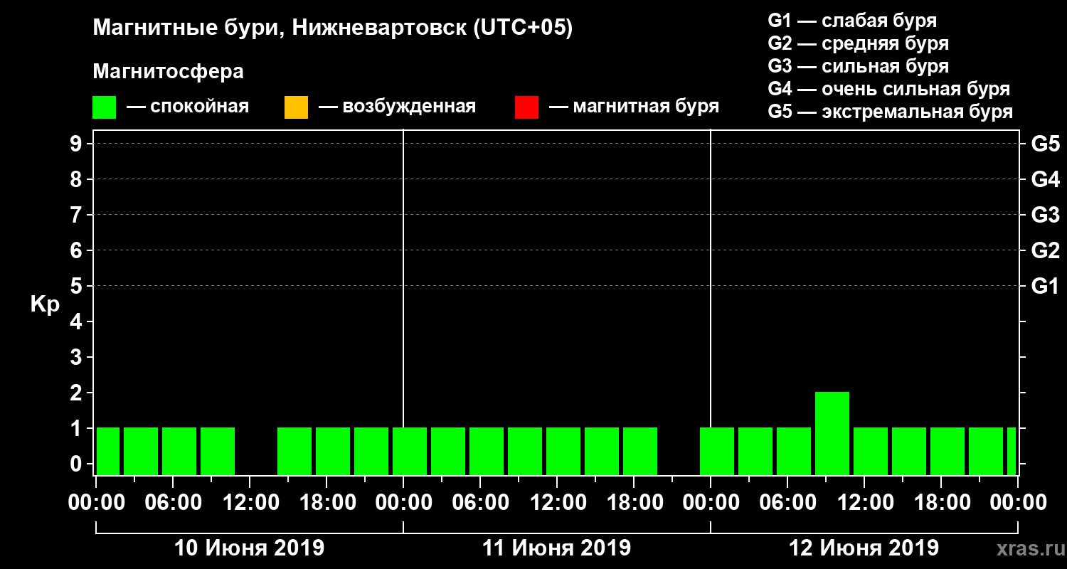 Магнитные бури в Нижневартовске 12 июня 2019 года