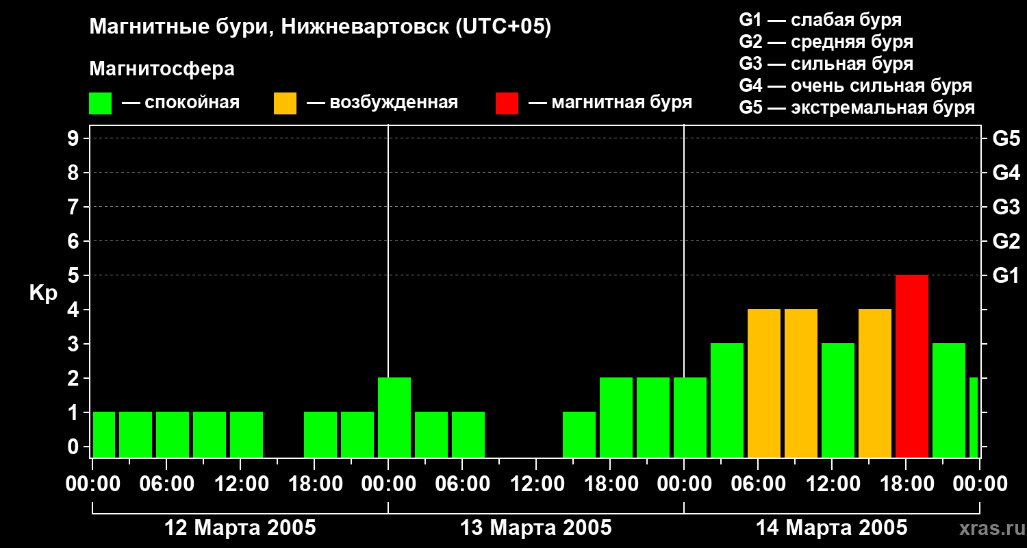 Магнитные бури в Нижневартовске — 14 марта 2005 года