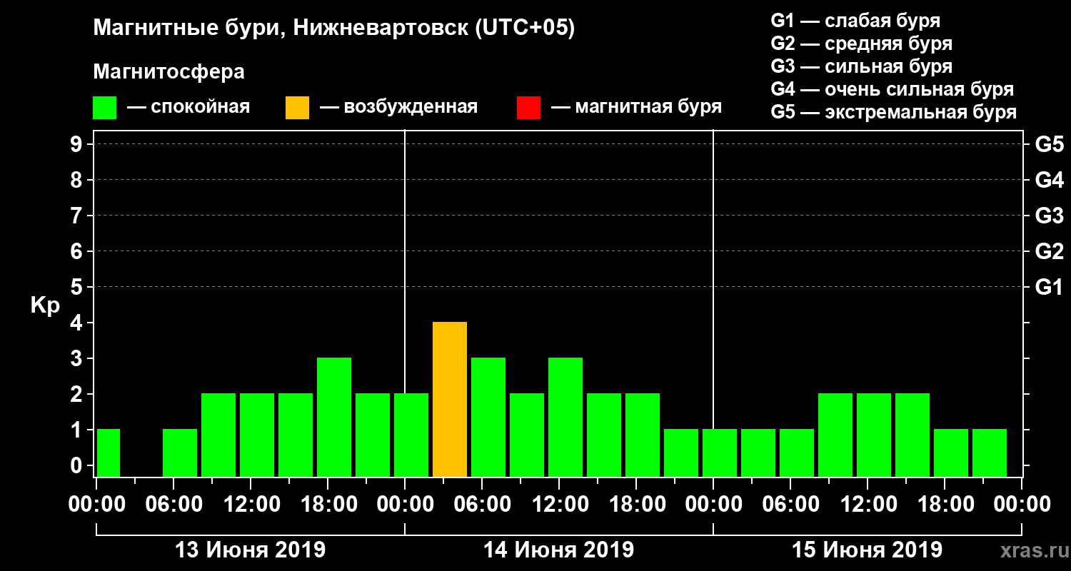 Магнитные бури в Нижневартовске 15 июня 2019 года