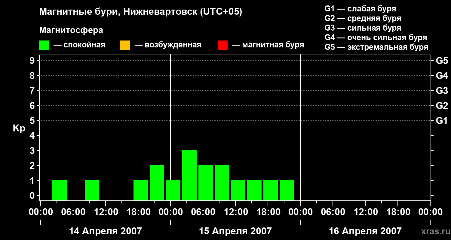 Магнитные бури в Нижневартовске — 16 апреля 2007 года