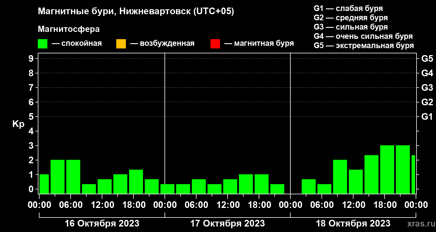 Магнитные бури в Нижневартовске 18 октября 2023 года
