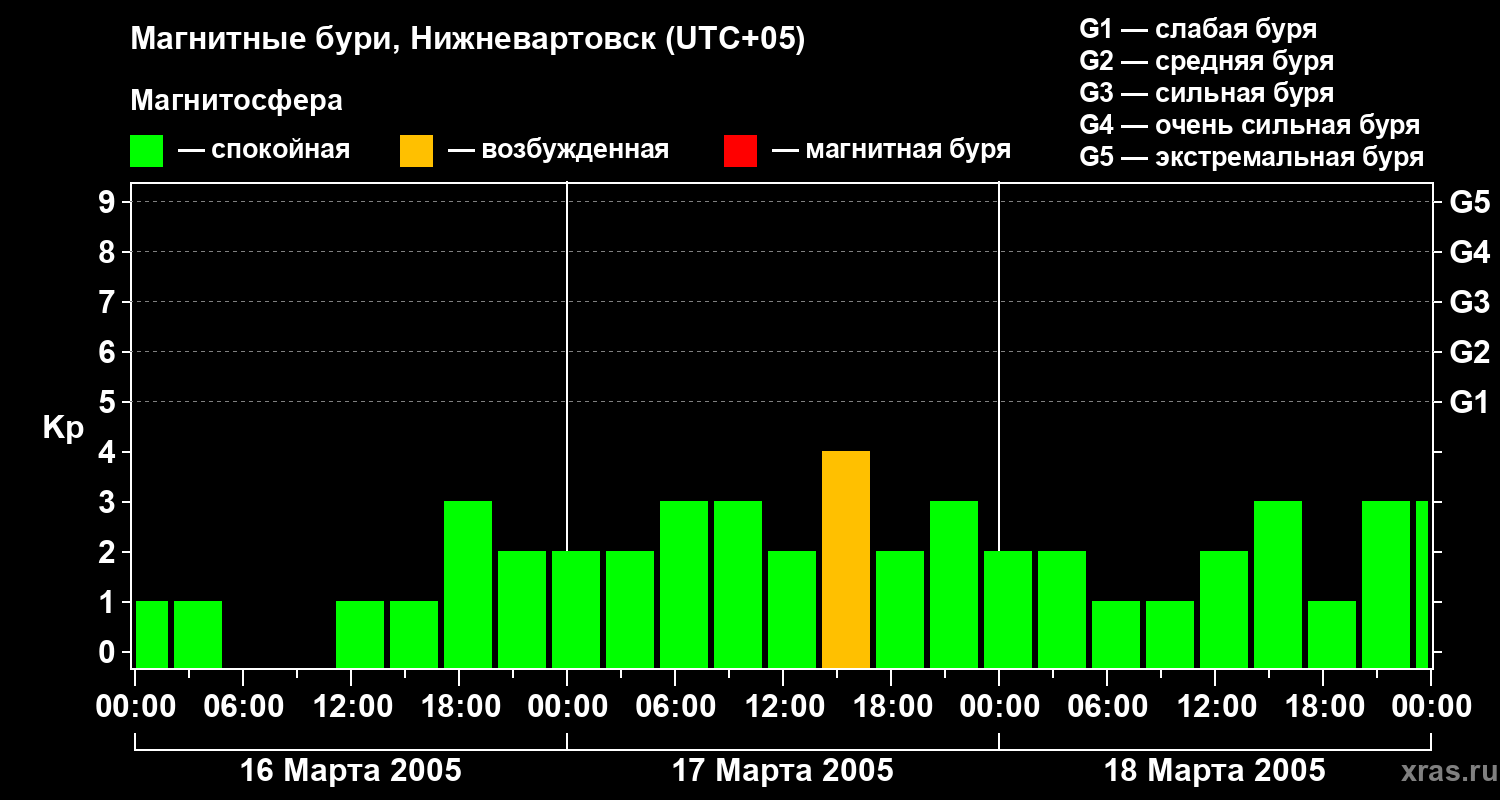 Магнитные бури в Нижневартовске — 18 марта 2005 года