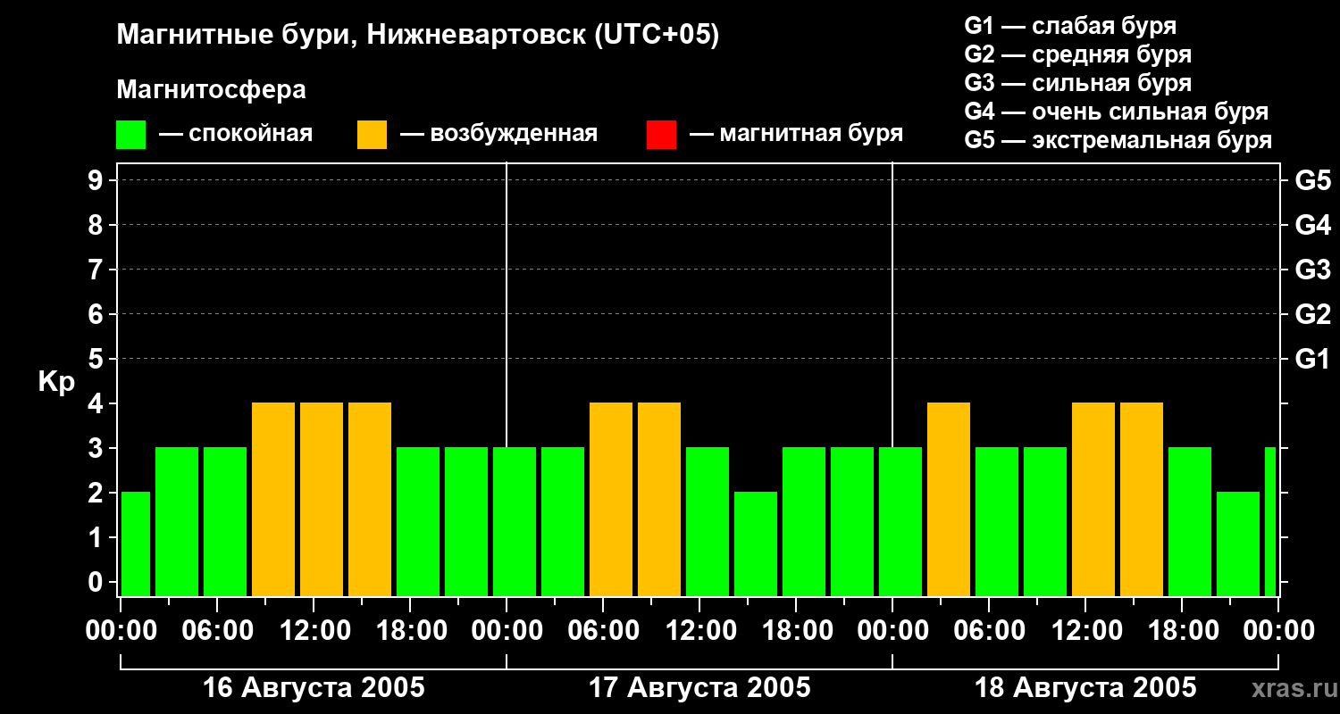 Магнитные бури в Нижневартовске — 18 августа 2005 года
